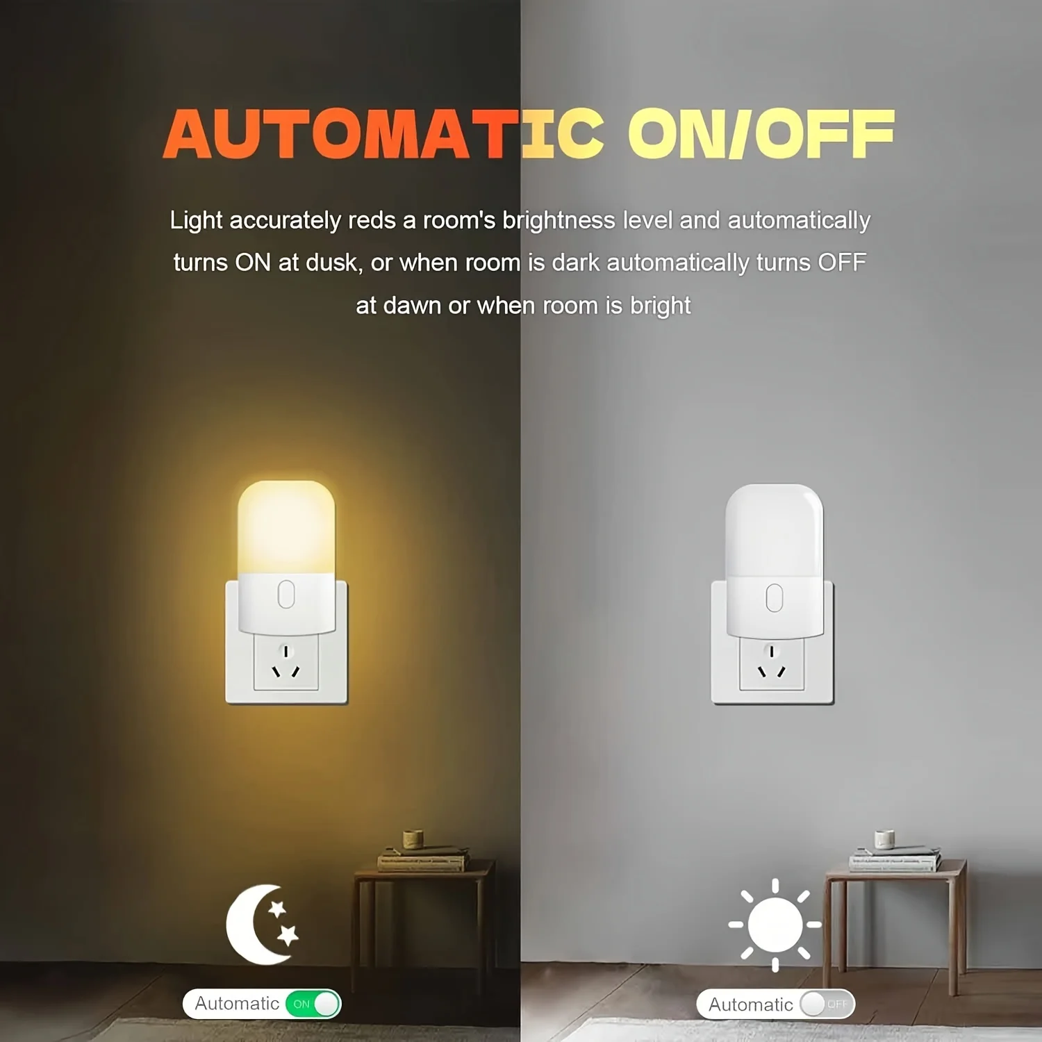 1/2 Set Smart LED Night Light, Mini Warm White Adjustable Wall Sconce, Plug-In Light Sensor Light for Bedroom, Bathroom, Kitchen