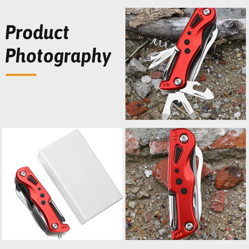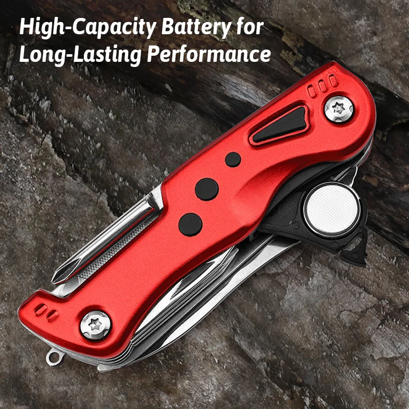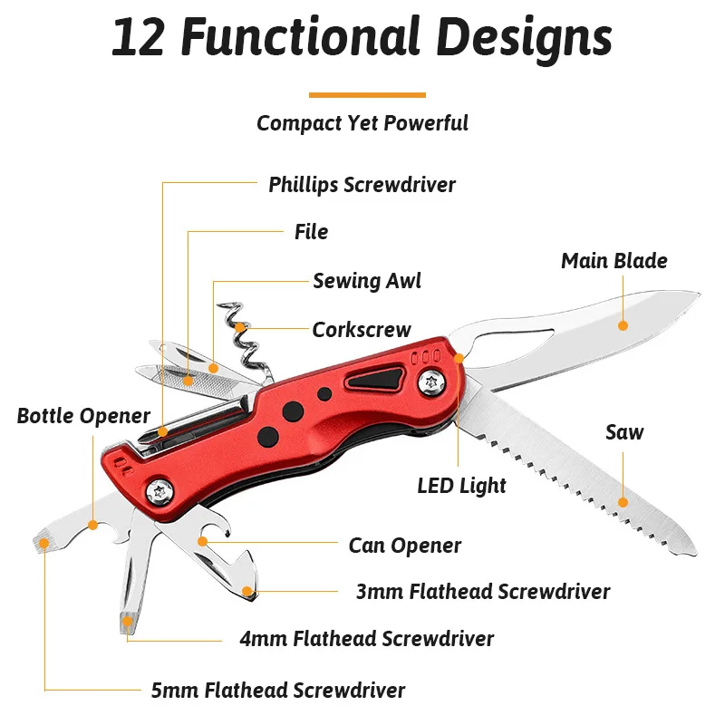 12-in-1 Multi-Tool Knife with LED Light Razor Sharp Stainless Blade Built-in Screwdrivers Bottle Opener Compact EDC for Survival