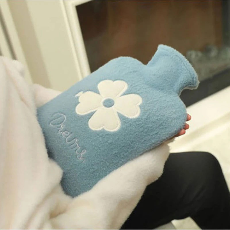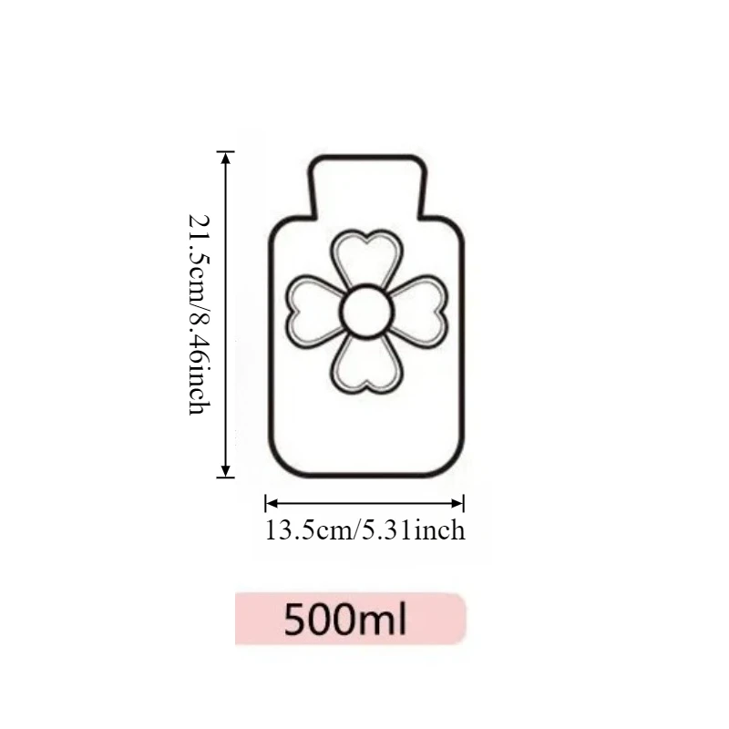 1pc 500ml Warm Water Bag Water-filled Hot Water Bottle Heat Pack Hand Warmer with Plush Cover for Winter Menstrual Cramps