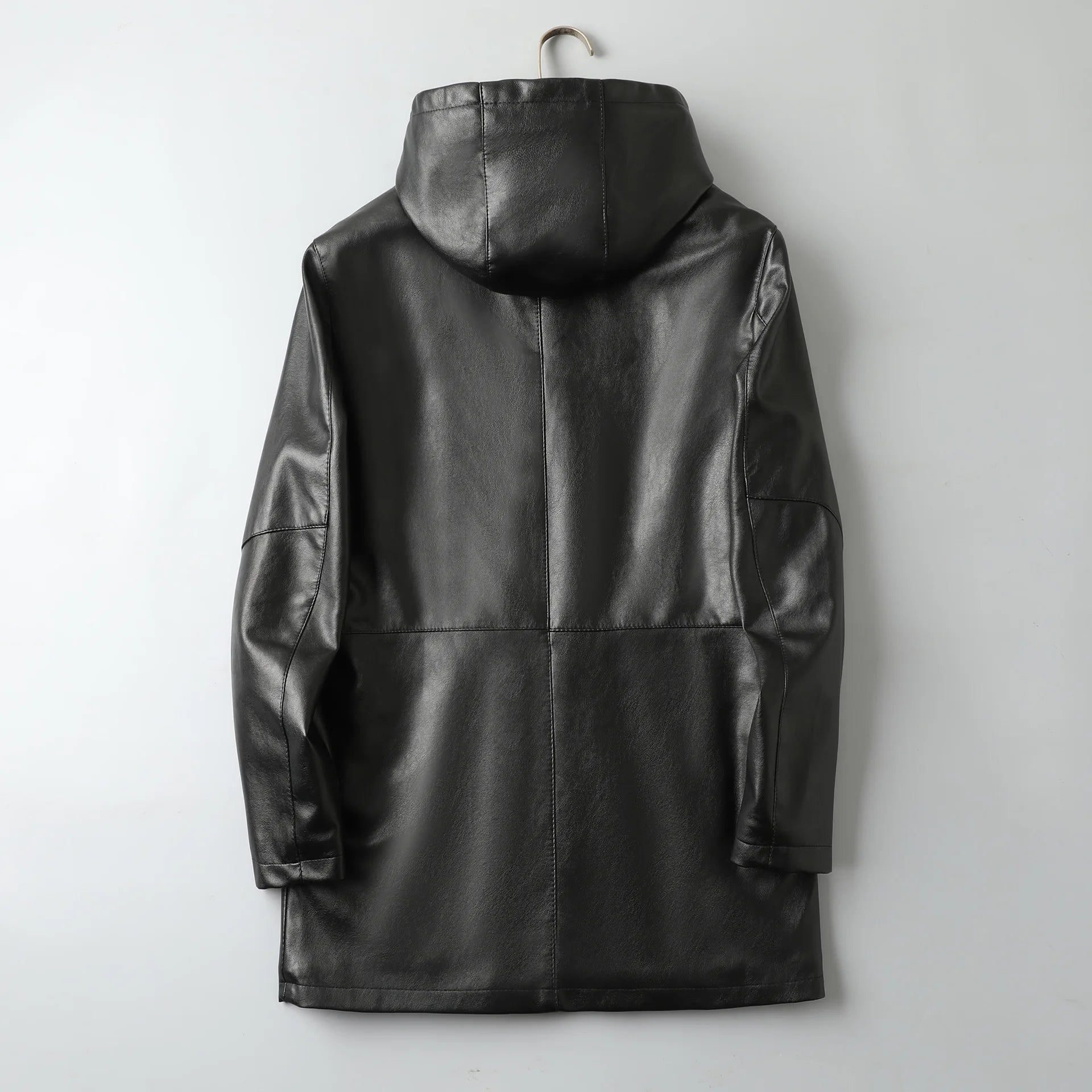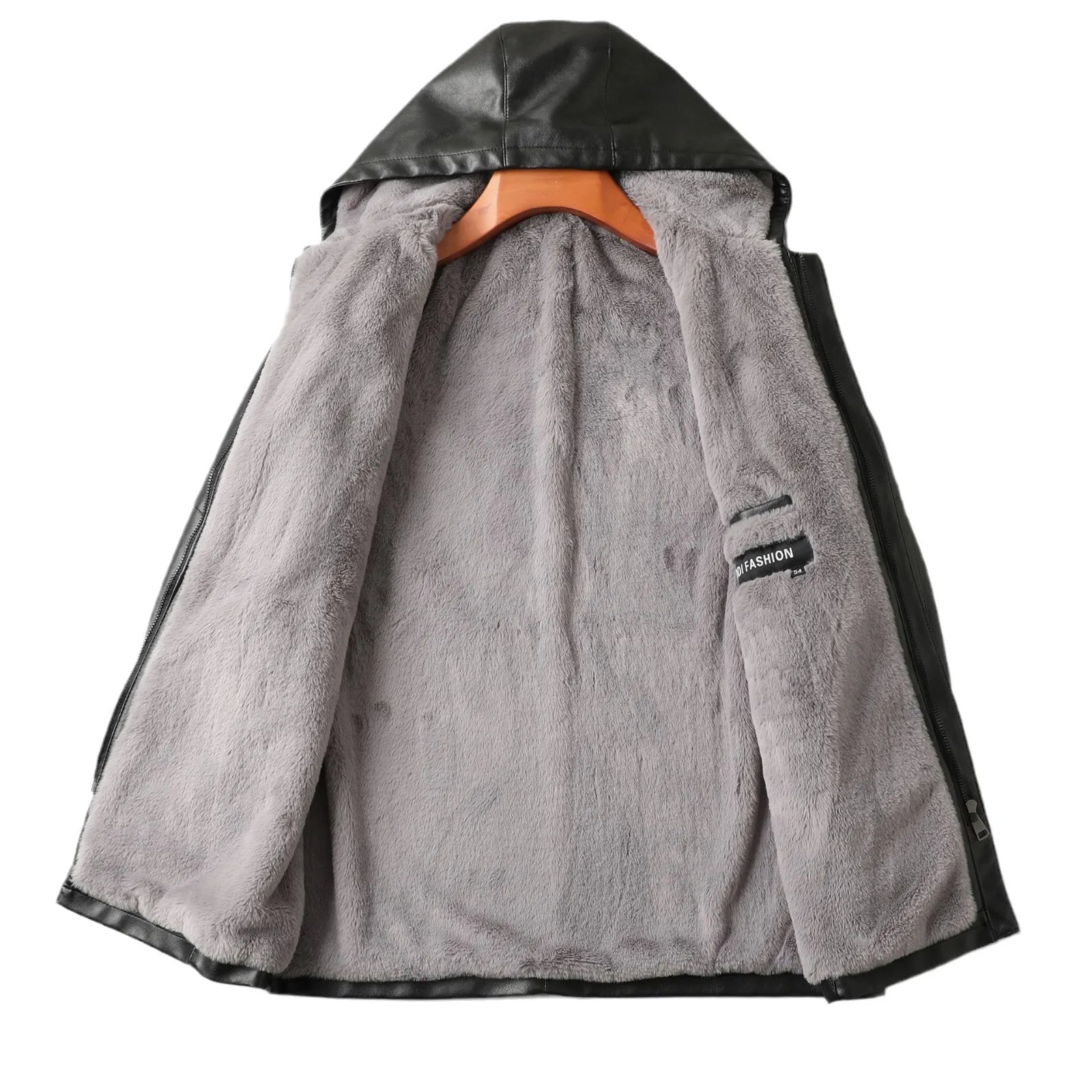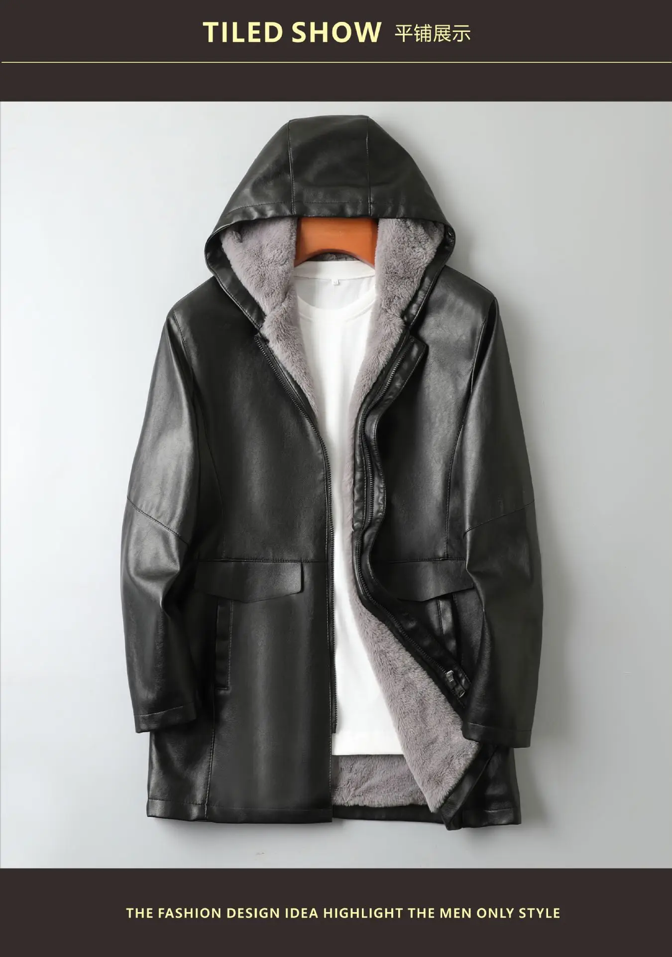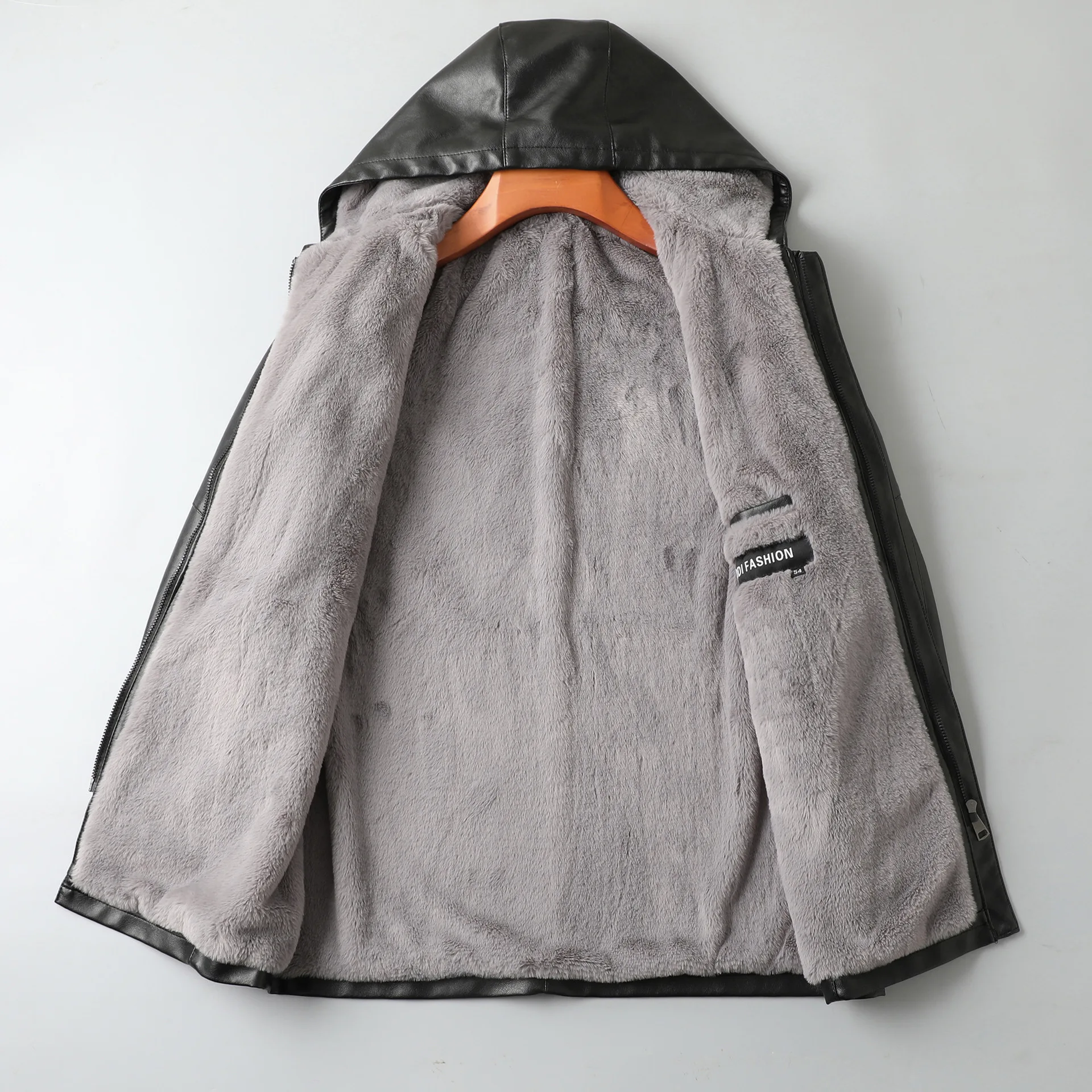 2023 Autumn/Winter New Mid length Hooded Men's Leather Jacket with Fleece and Thickened Business Casual Fashion