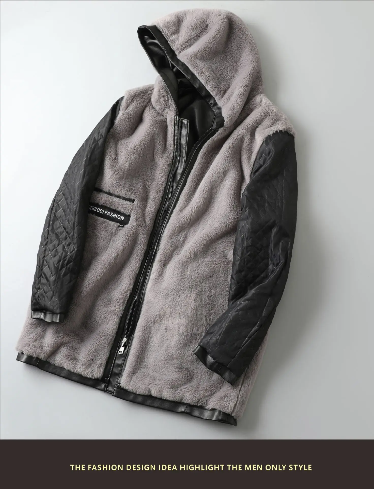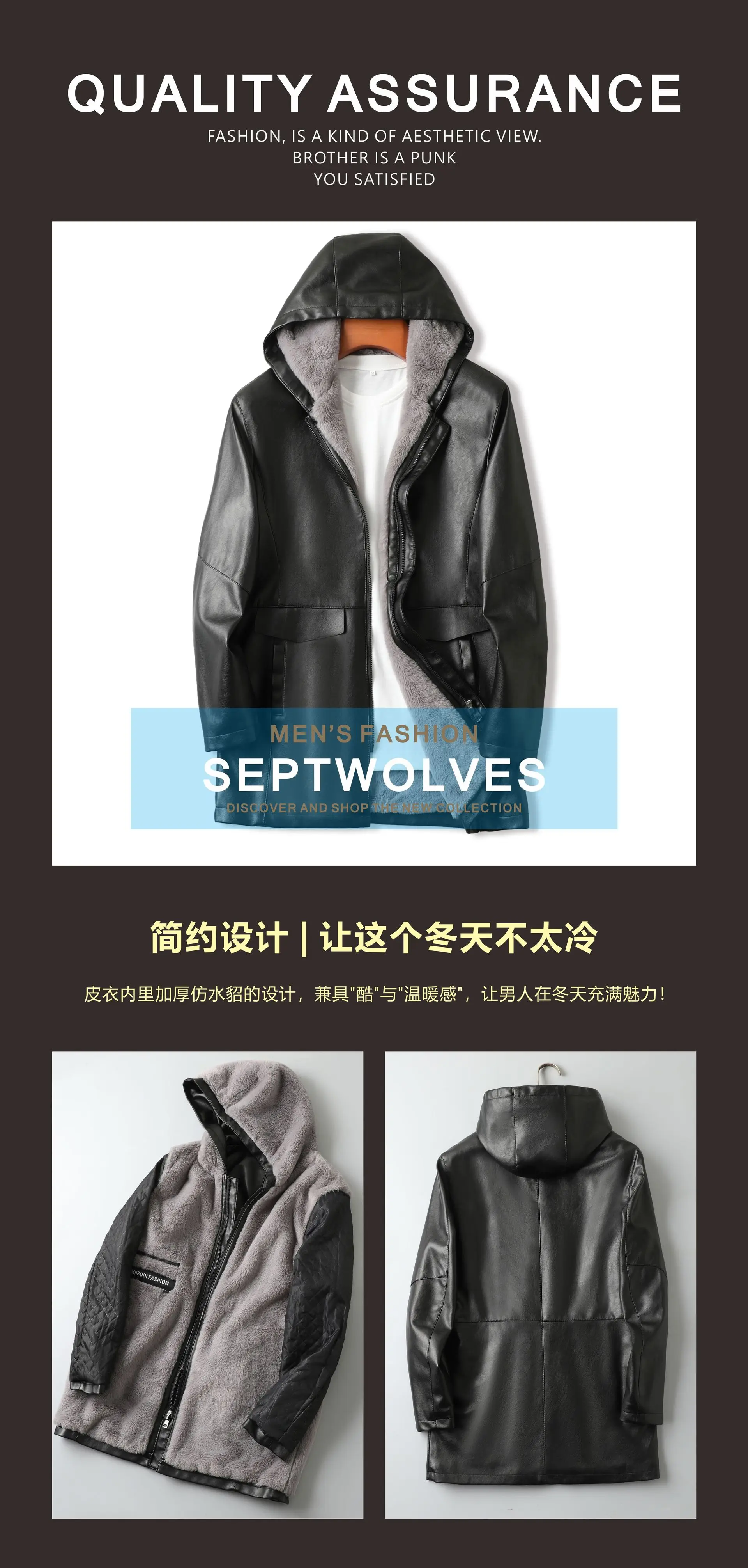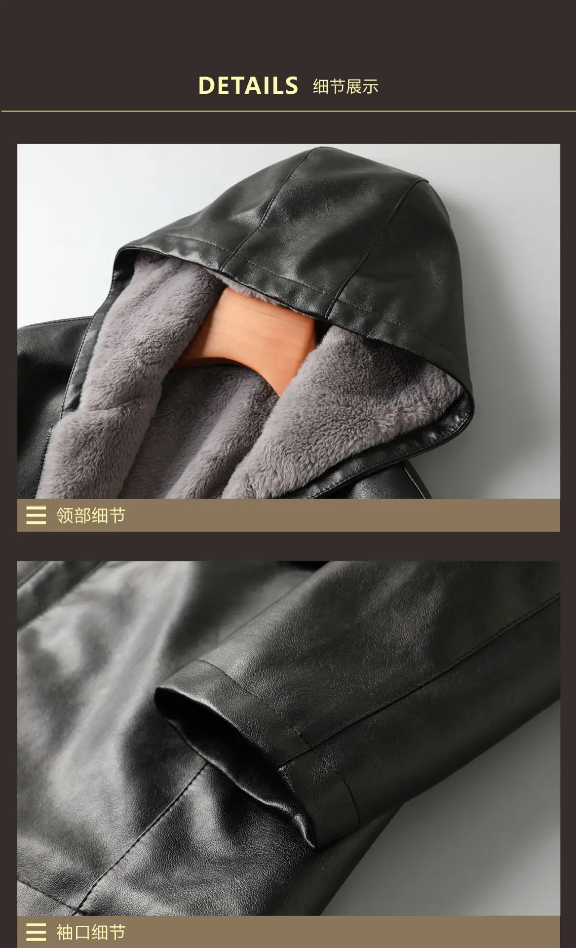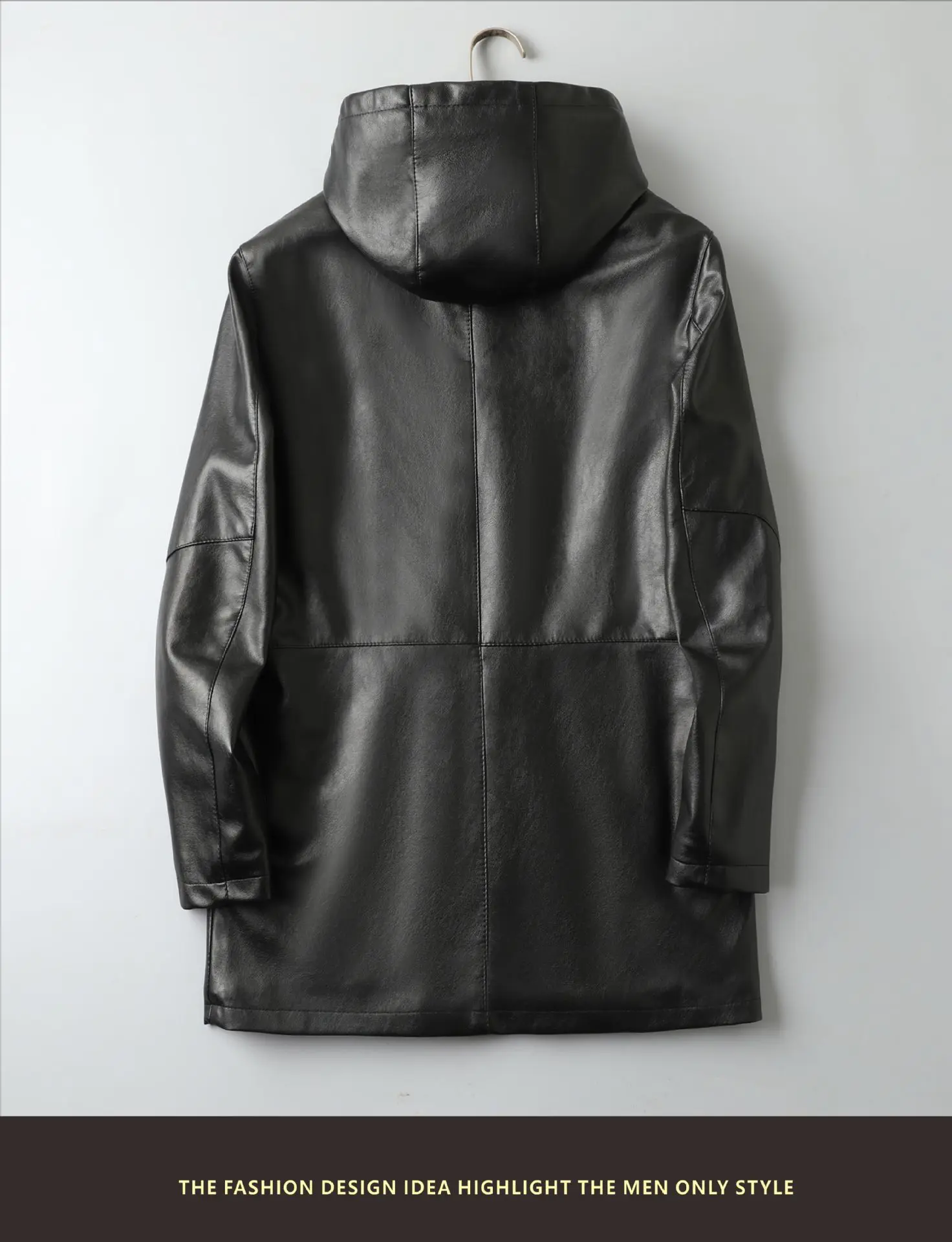 2023 Autumn/Winter New Mid length Hooded Men's Leather Jacket with Fleece and Thickened Business Casual Fashion