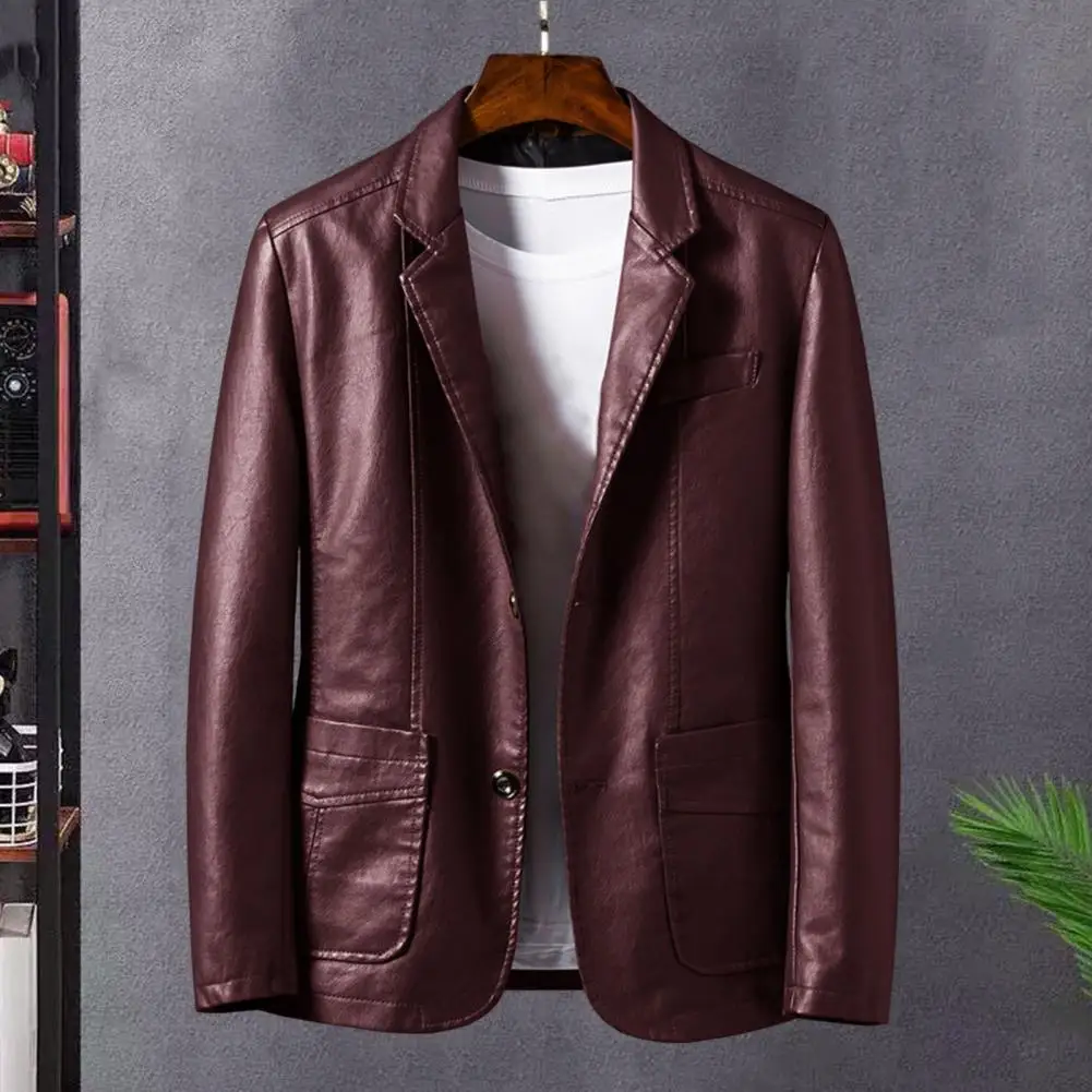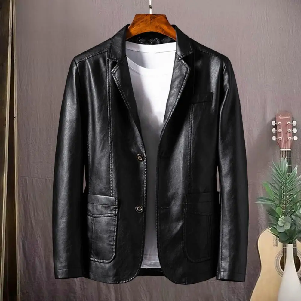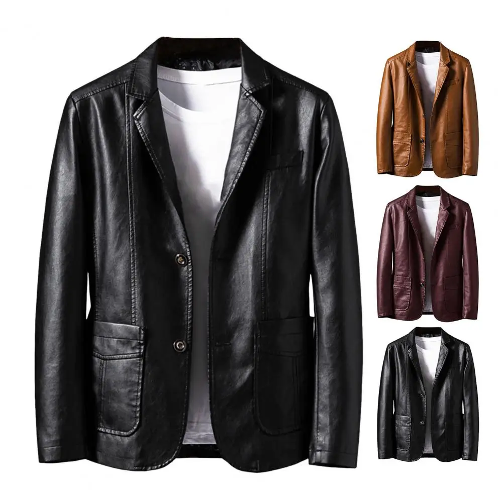 2024 Men's Leather Jackets Lapel Business Leather Jackets Men PU Blazers Korean Style Slim Men Fashion Leather Coat Outwear