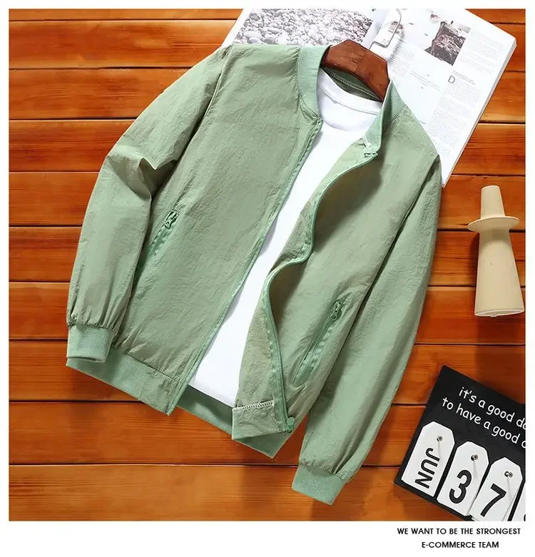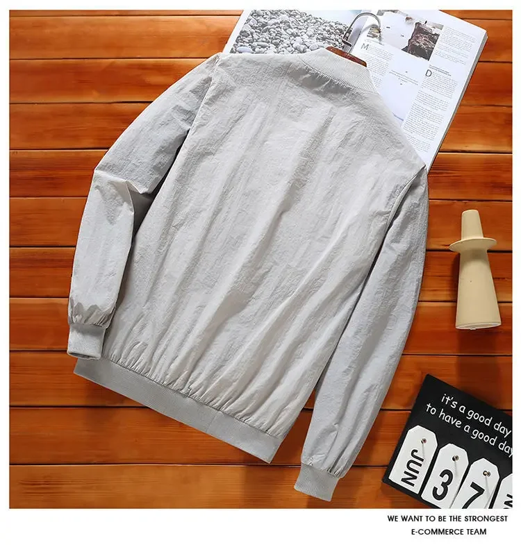2024 Summer New Thin Style Round Neck Long Sleeve Screw Thread Zipper Jacket Man Solid Color Pockets Casual Sunscreen Clothing