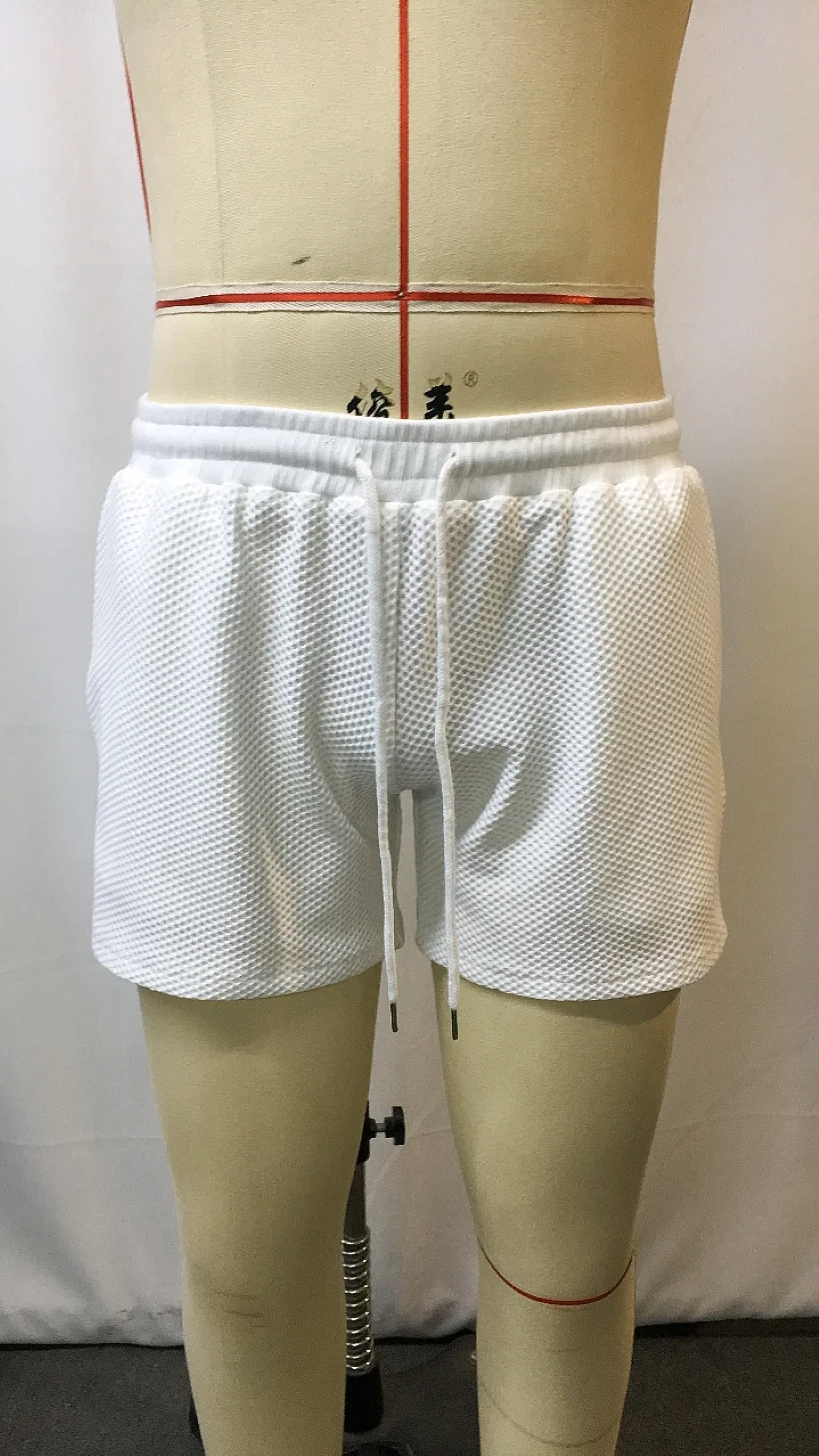 2025 Men's Oversized Stretch Waffle Shorts - Athletic Fitness, Casual Comfort, Elastic Waist, Lace-Up, Daily Basic Breathable Su