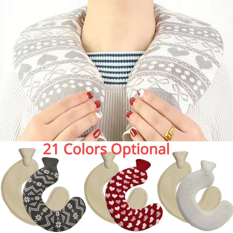21 Colors Thick Hot Water Bottle and Cloth Cover Set 1L Winter Warm Hot Water Bag Neck Shoulder Warmer Hand Warm Water Bottle