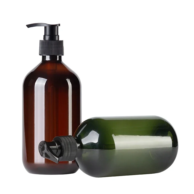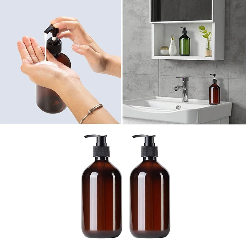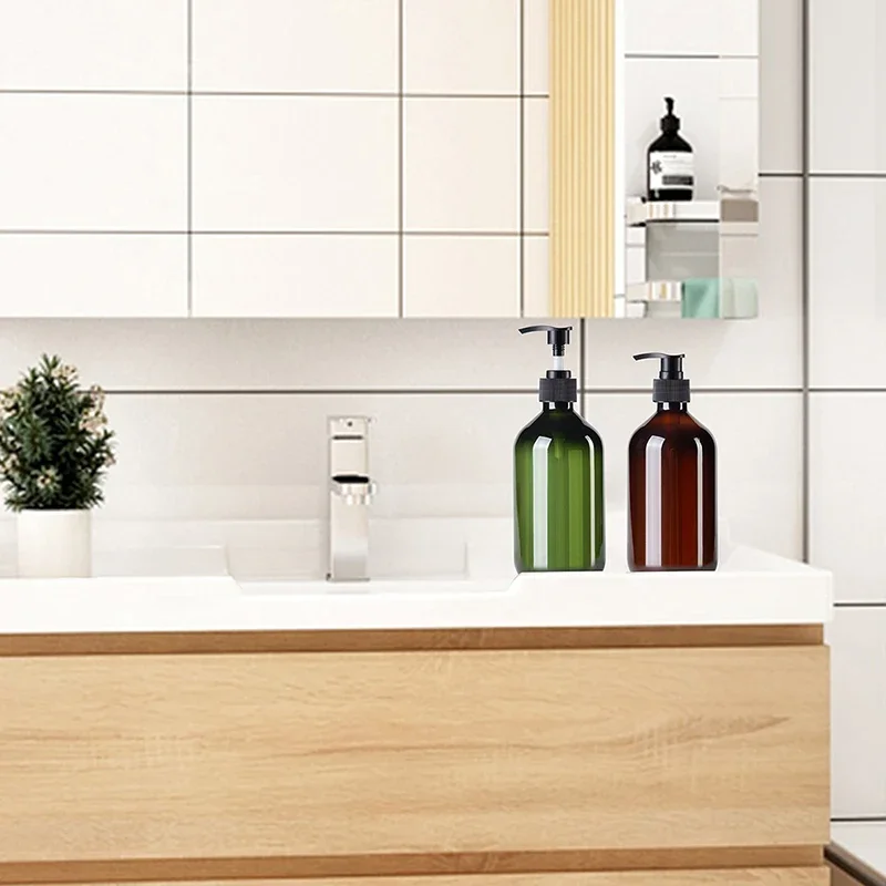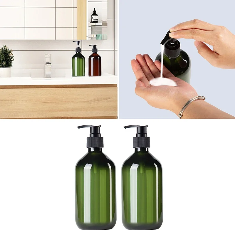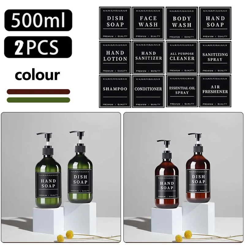 2pcs Brown Green Lotion Bottles 500ML Soap Dispenser Round Bottles with 6 Pieces/12 Pieces Black Label Bathroom Accessories