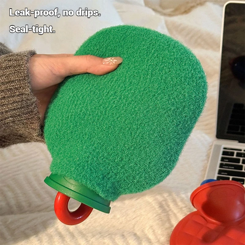 1. Rubber Material: Made of high-quality, thickened natural rubber (inner bottle) and durable plush (outer cover), this plush hot water bag features a tight-sealing screw cap with a silicone gasket, effectively preventing water leakage and ensuring safe use for both adults and kids.