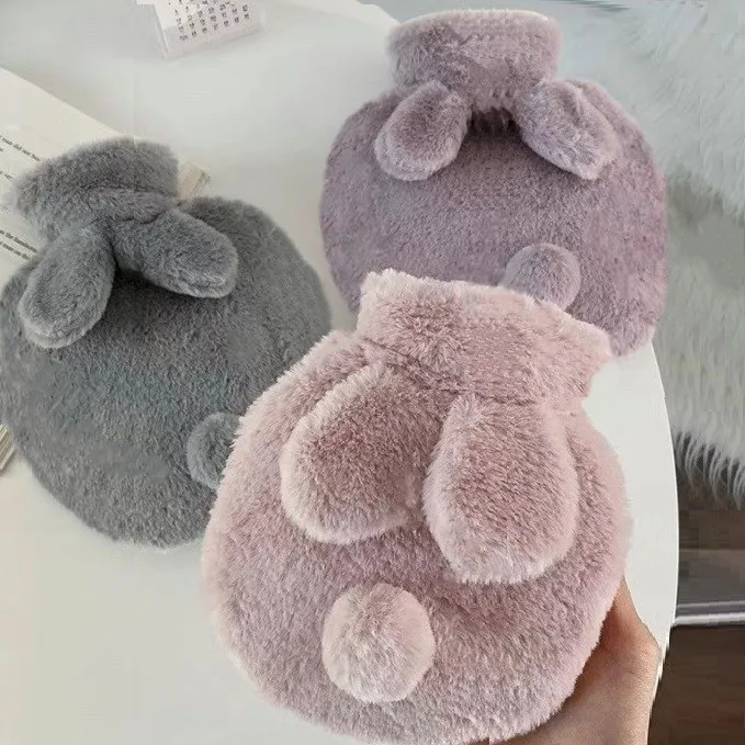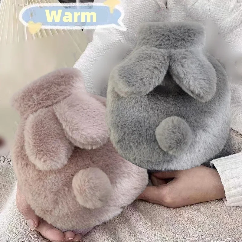 300ML Cute Plush Rabbit Hot Water Bag with Cover For Winter Hand Feet Warmer Explosion-Proof Reusable Jug Bottle for Hot Water