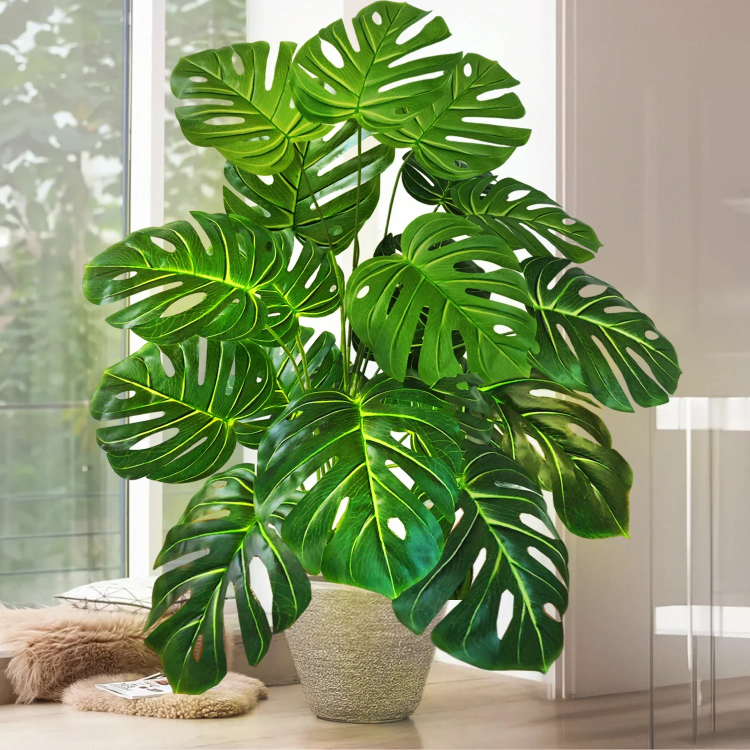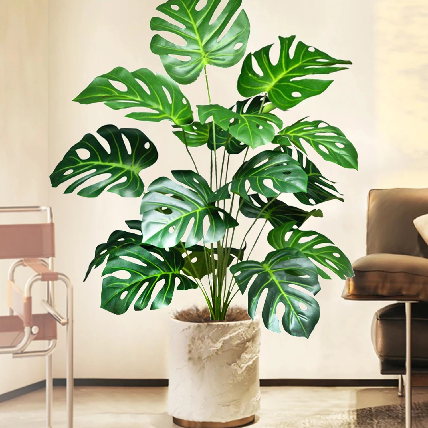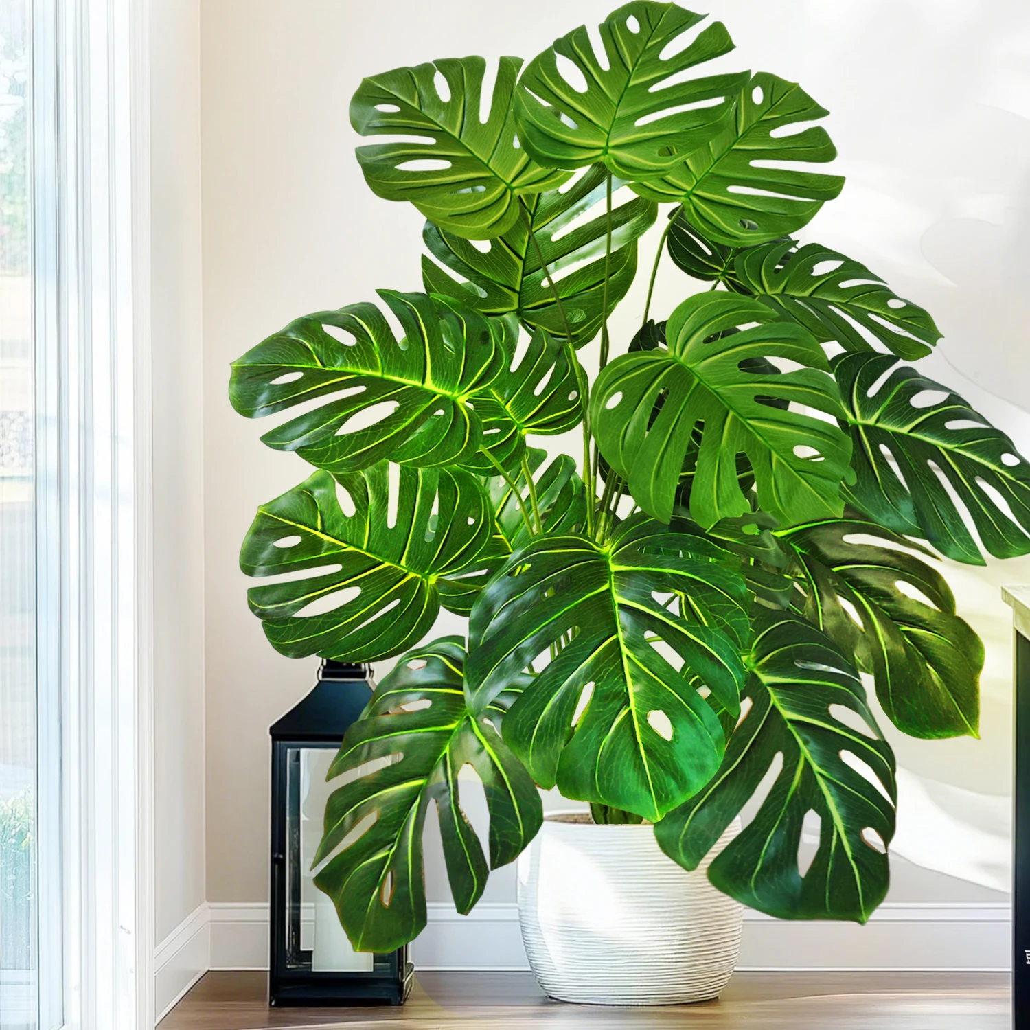 40-130cm(51.18in) Artificial Monstera Plant Fake Palm Tree Plastic Turtle Leaf Green Plant for Home Garden Room Office Decor