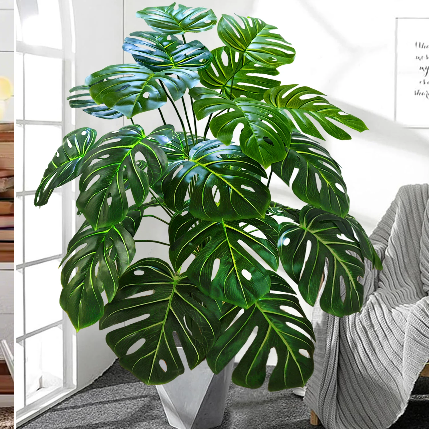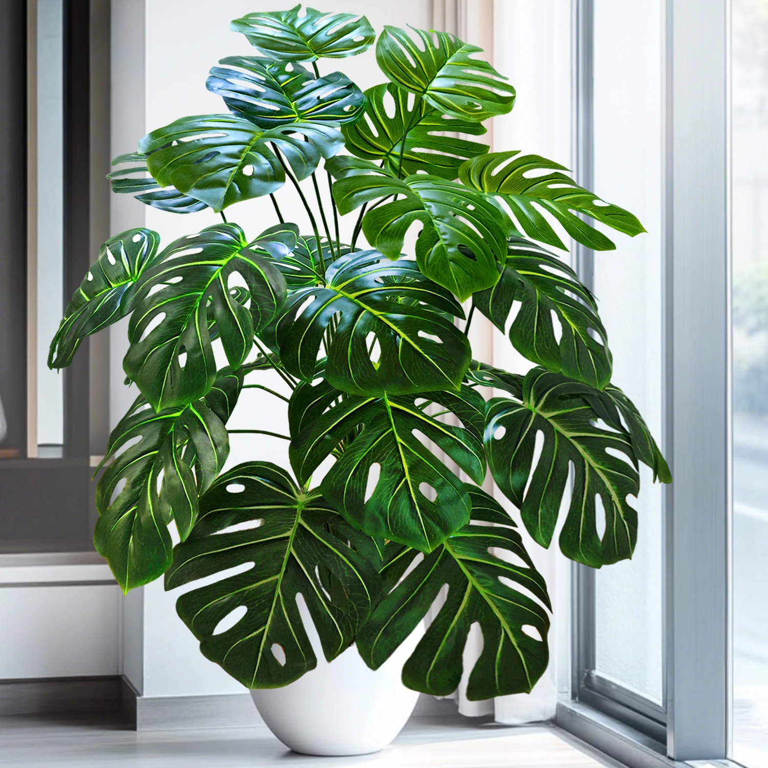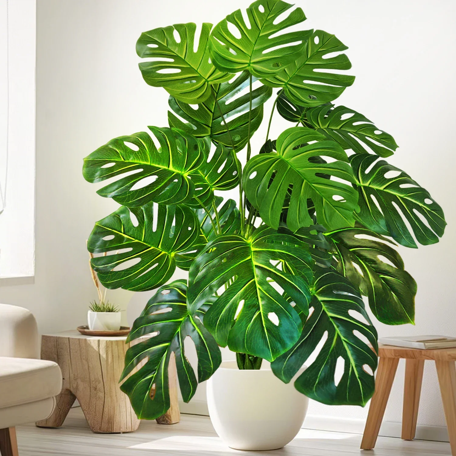 40-130cm(51.18in) Artificial Monstera Plant Fake Palm Tree Plastic Turtle Leaf Green Plant for Home Garden Room Office Decor