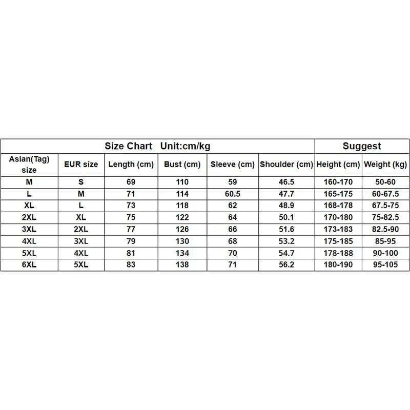 size_info: {"sizeInfoList":[{"length":{"cm":"110","inch":"43.31"},"size":"M","vid":-1},{"length":{"cm":"114","inch":"44.88"},"size":"L","vid":-2},{"length":{"cm":"118","inch":"46.46"},"size":"XL","vid":-3},{"length":{"cm":"122","inch":"48.03"},"size":"XXL","vid":-4},{"length":{"cm":"126","inch":"49.61"},"size":"XXXL","vid":-5},{"length":{"cm":"130","inch":"51.18"},"size":"4XL","vid":-6},{"length":{"cm":"134","inch":"52.76"},"size":"5XL","vid":-7},{"length":{"cm":"138","inch":"54.33"},"size":"6XL","vid":-8}]}