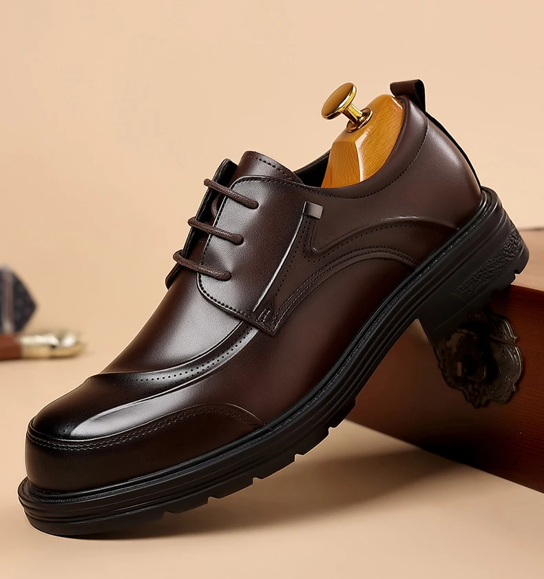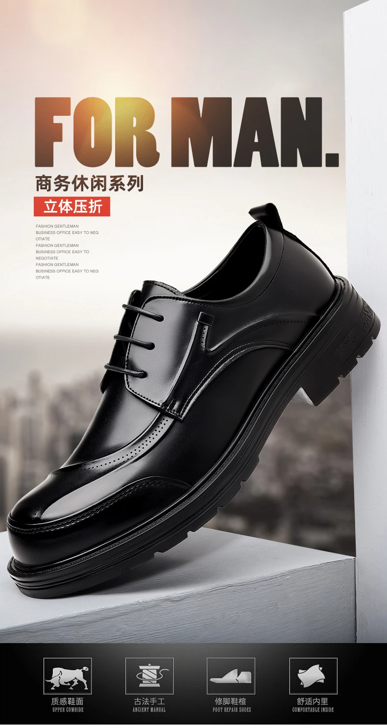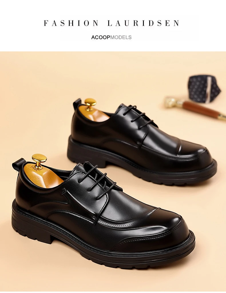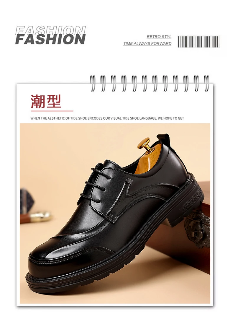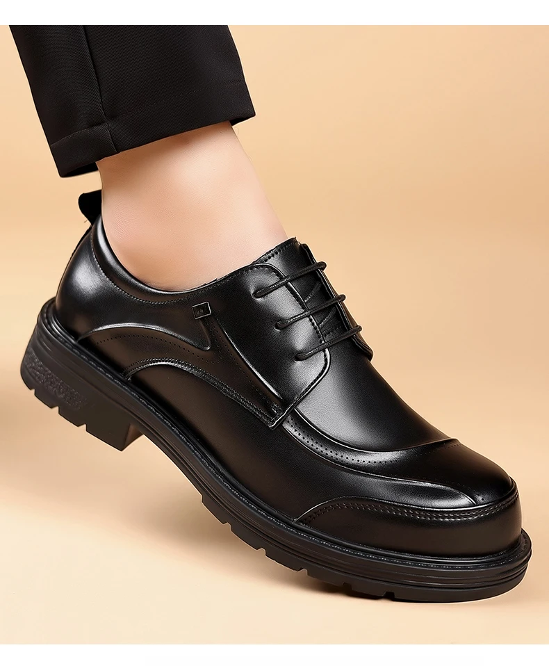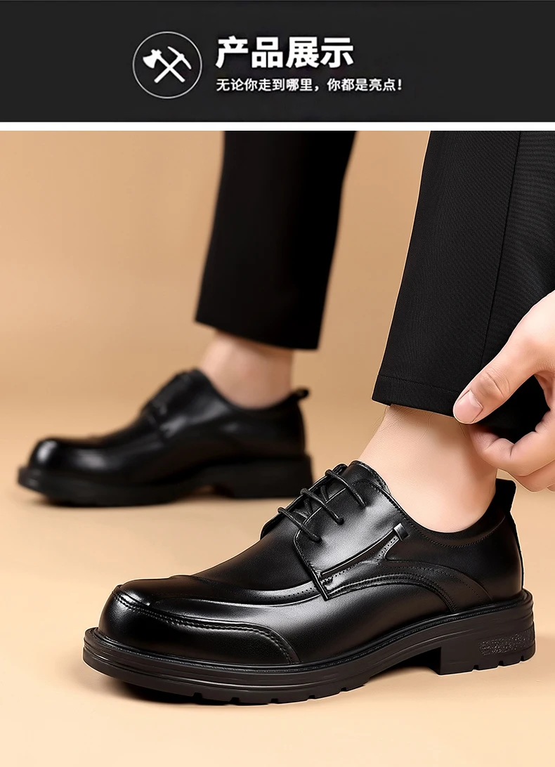 Spring and autumn trend men's business casual leather shoes lace-up big head formal men's leather shoes