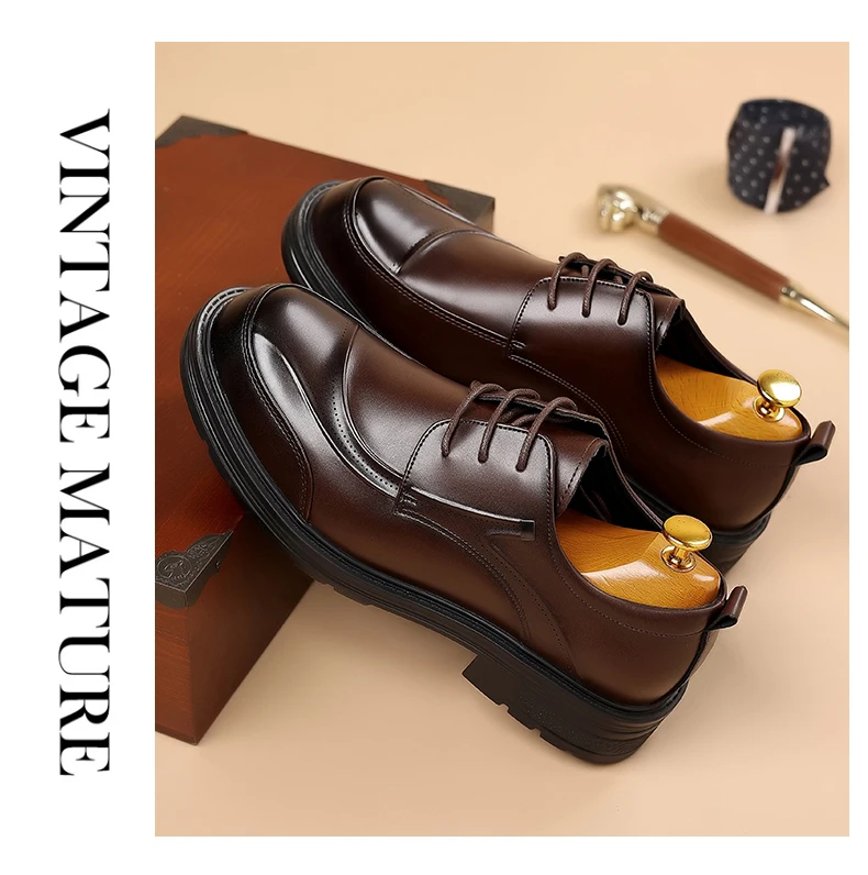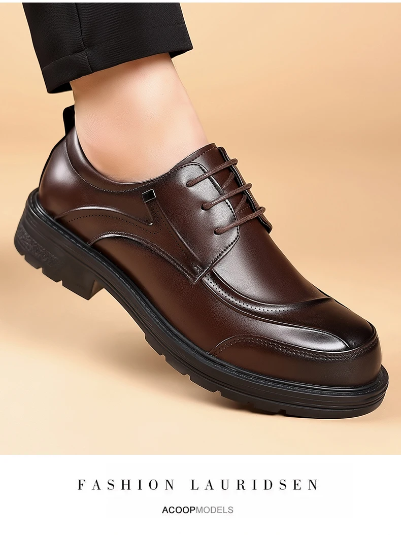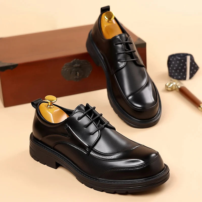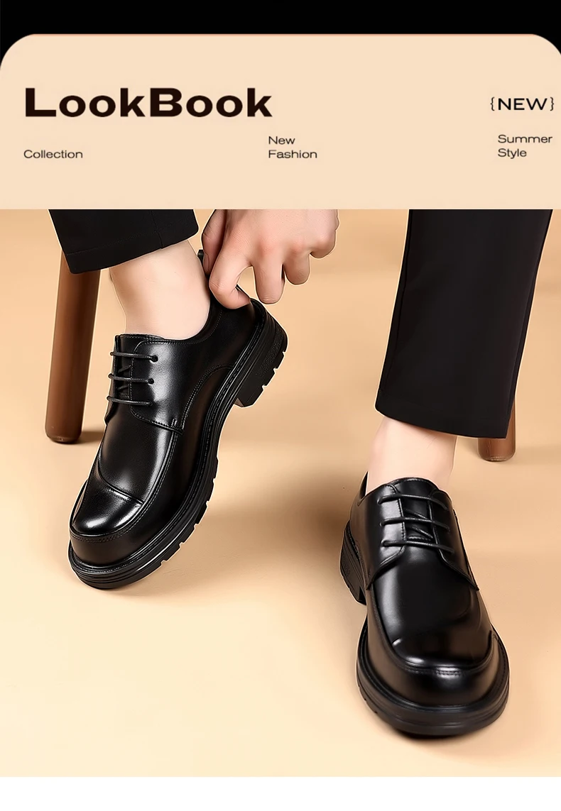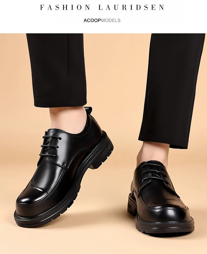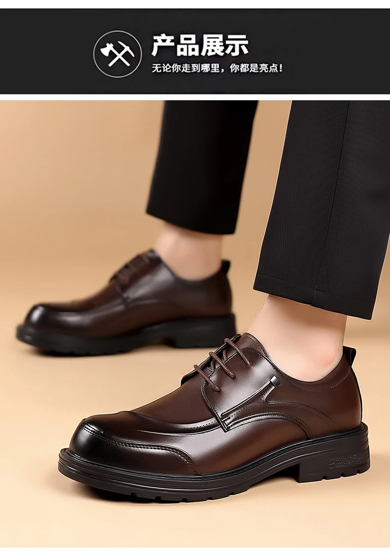 Spring and autumn trend men's business casual leather shoes lace-up big head formal men's leather shoes