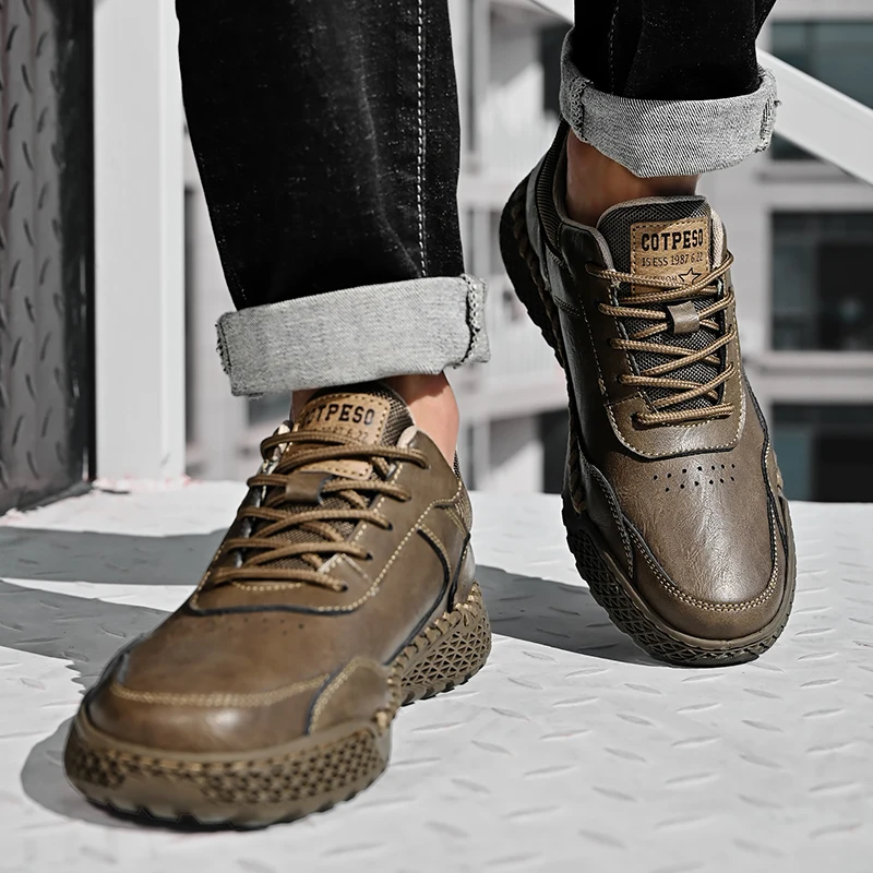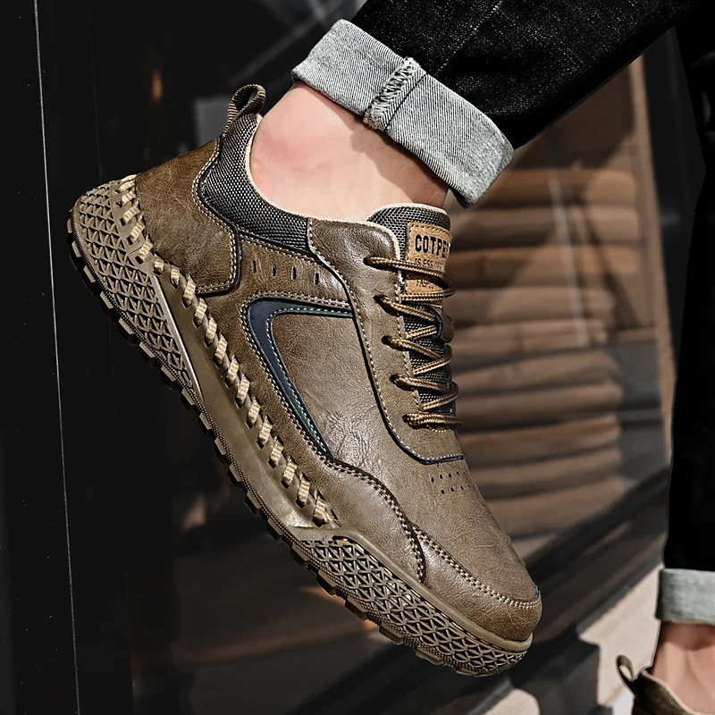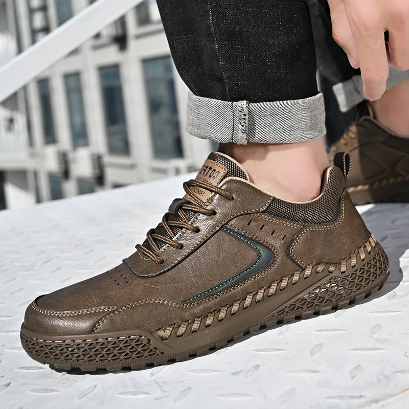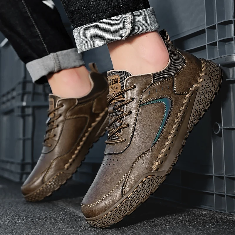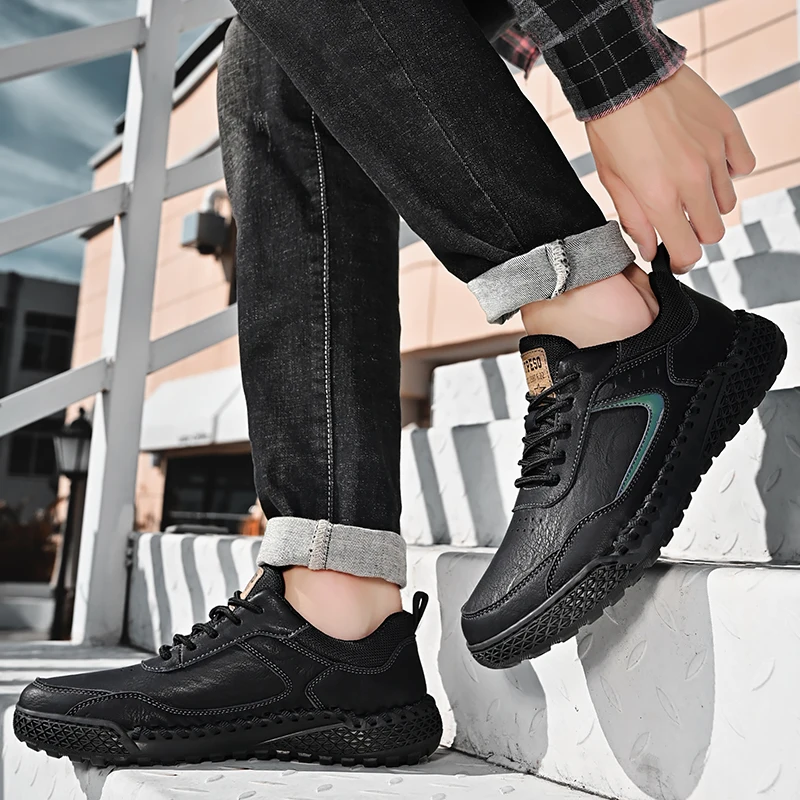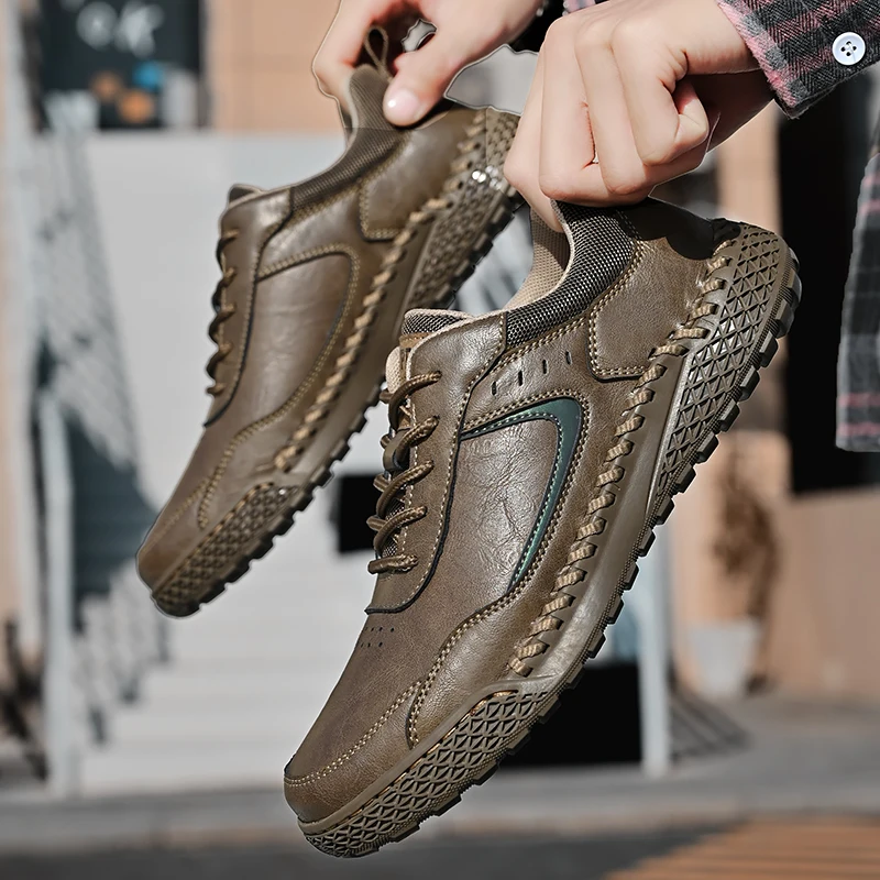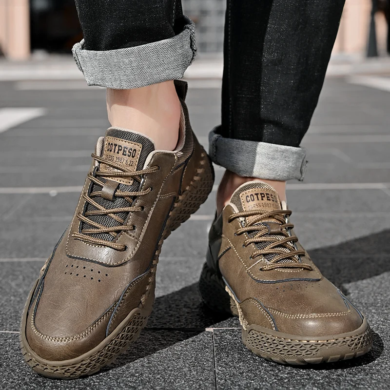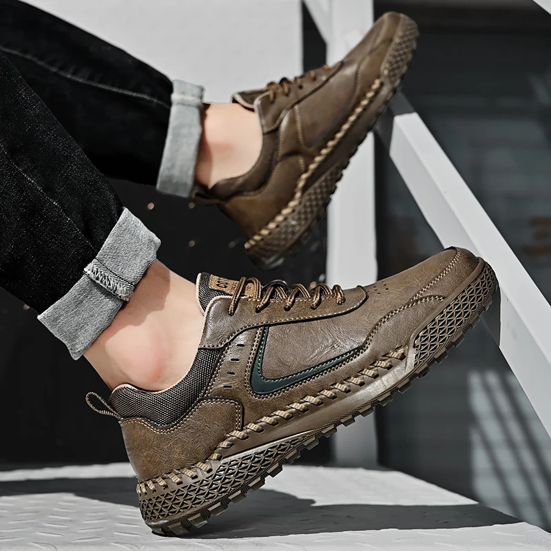 Stylish Mens Casual Leather Sneakers Classic Men's Masculino Leisure Walk Trainers Lace-Up Men Outdoor Handmade Treking Footwear