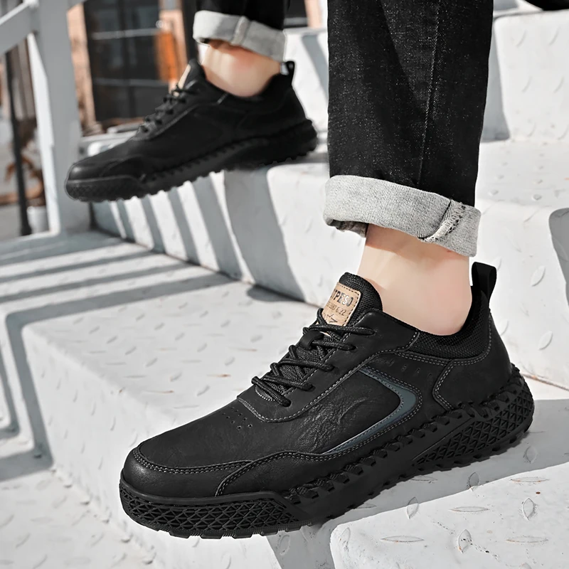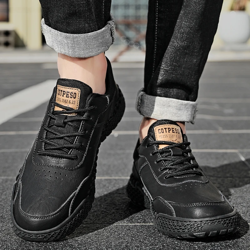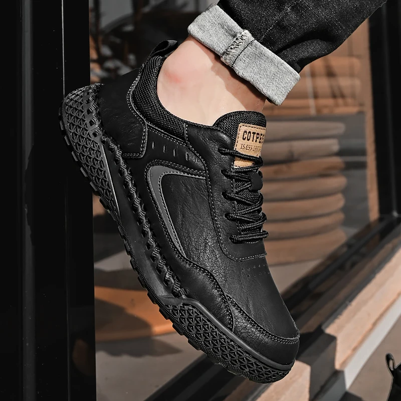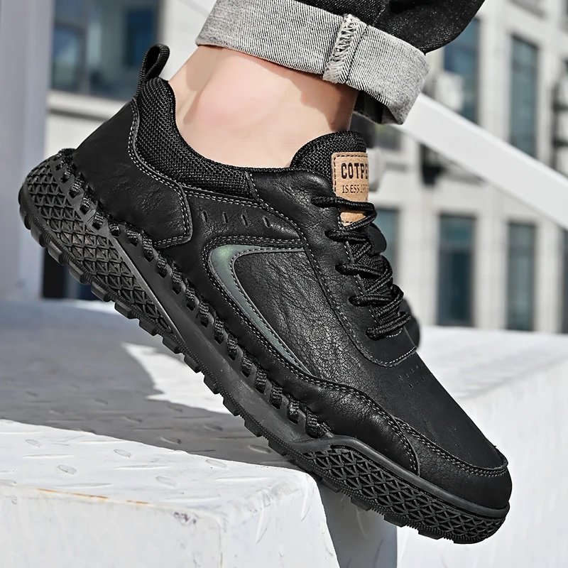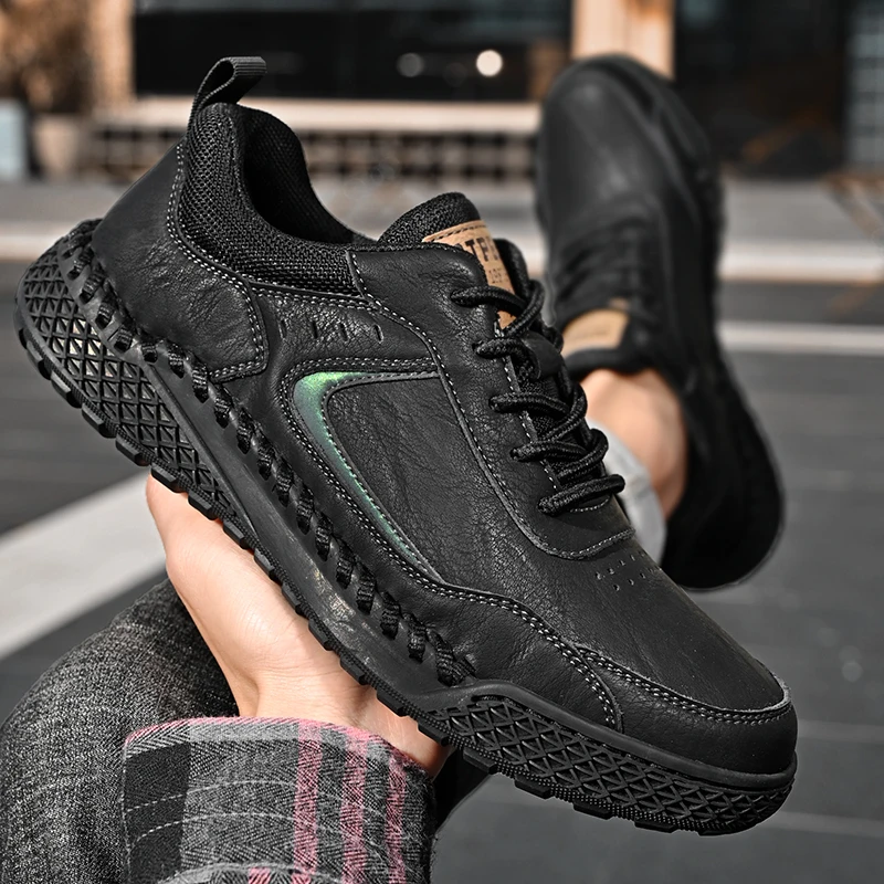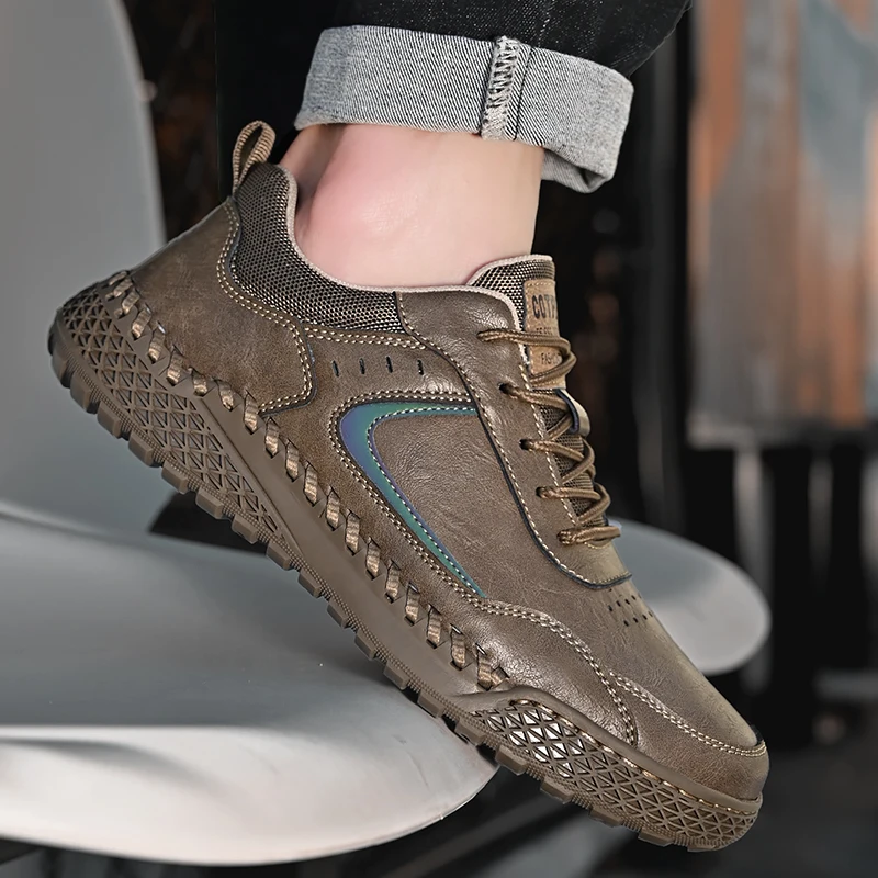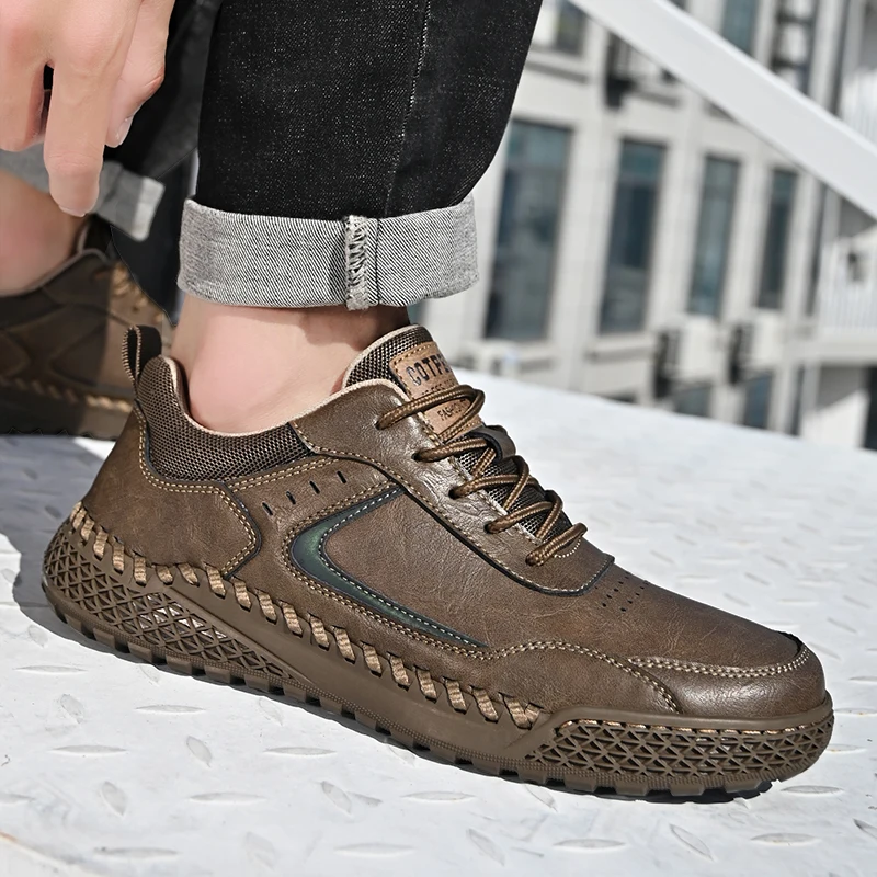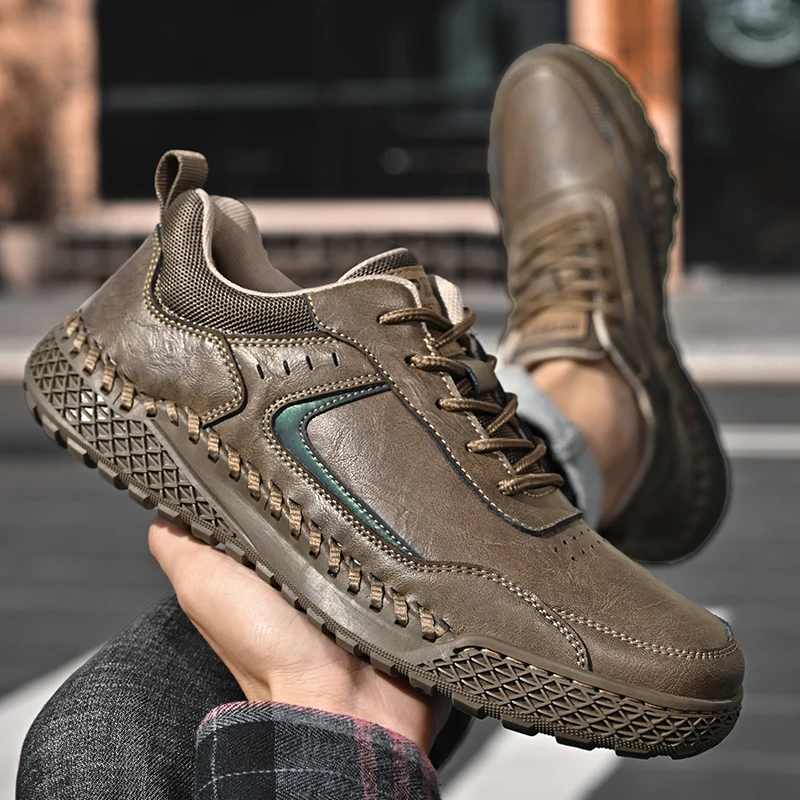 Stylish Mens Casual Leather Sneakers Classic Men's Masculino Leisure Walk Trainers Lace-Up Men Outdoor Handmade Treking Footwear