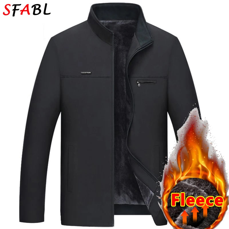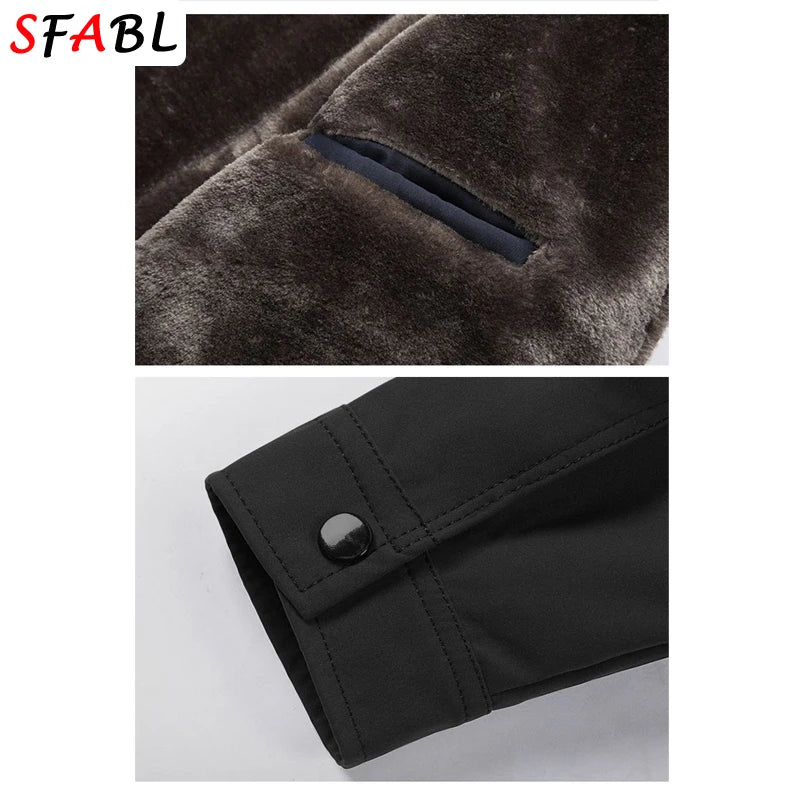 Luxury Autumn Winter Thick Warm Jacket Men Fleece Lined Winter Jackets for Men Solid Color Business Men's Winter Coats Windbreak