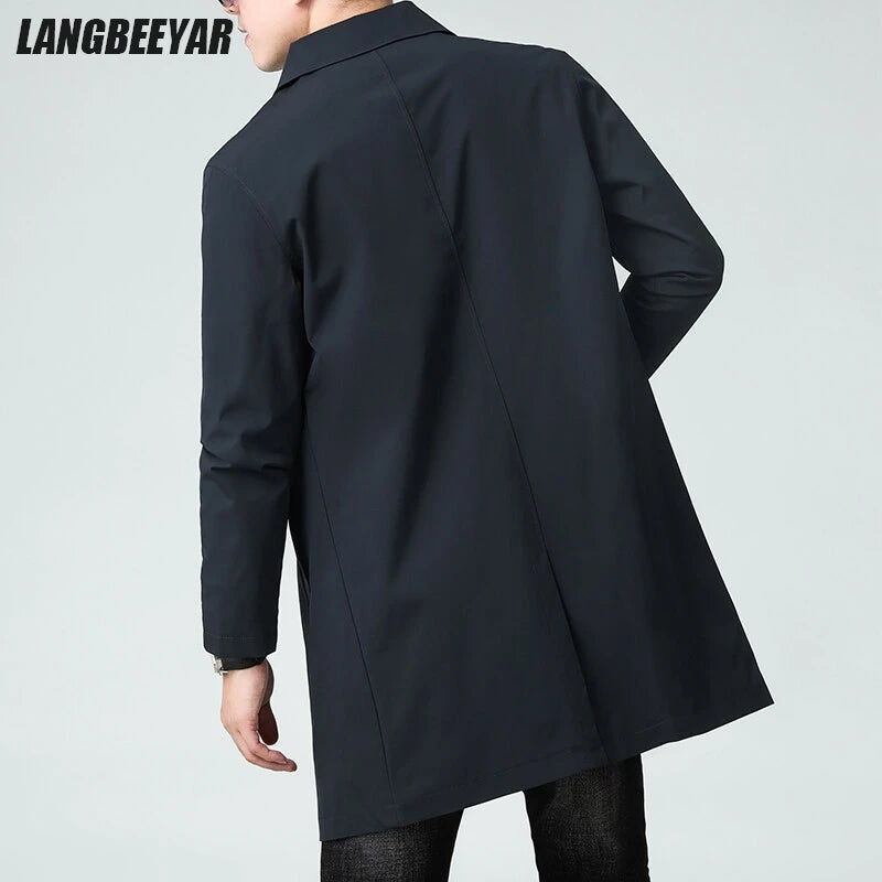 Top Quality Korean New Brand Casual Fashion Long Men Trench Coat Windbreaker Overcoat Slim Fit Long Jacket Men Clothing