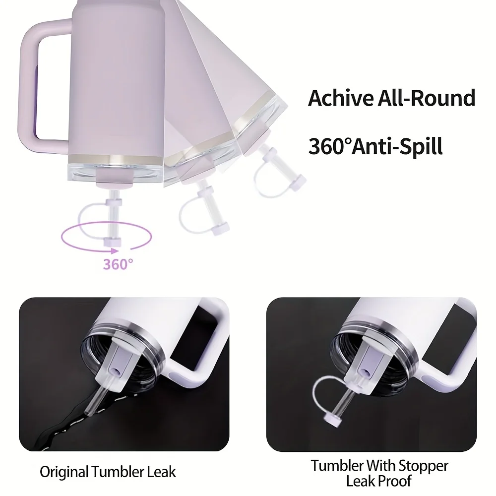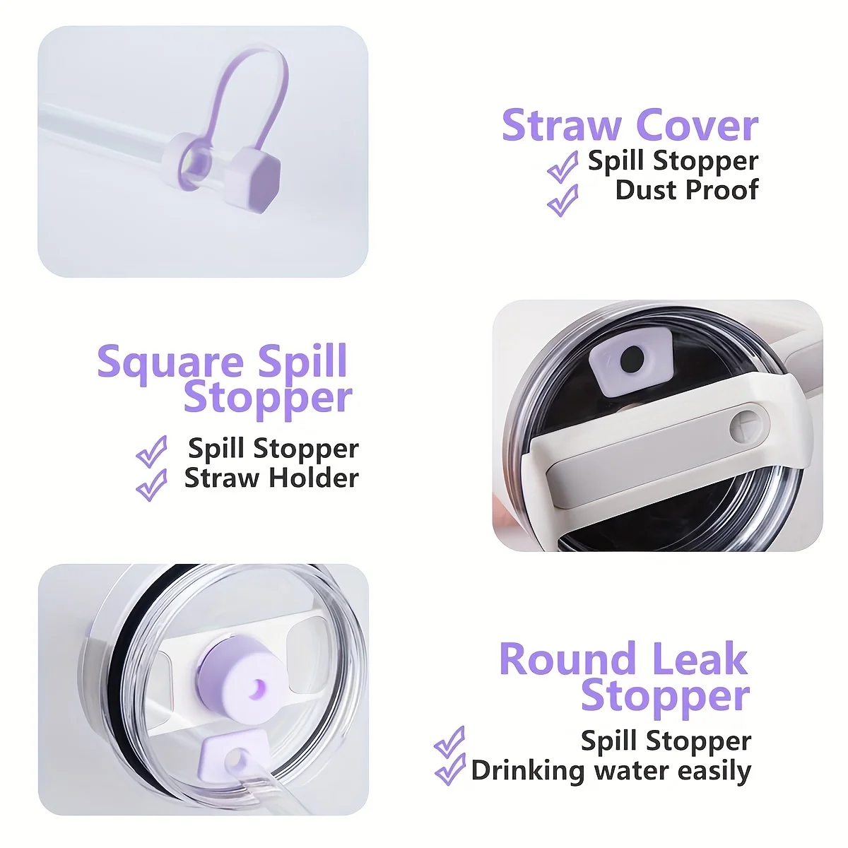 Tumbler Accessories Set for Stanley Cup 3Pcs Silicone Spill Proof Stopper 1Pcs Silicone Boot for 40oz & 30oz Tumbler 10 mm Straw