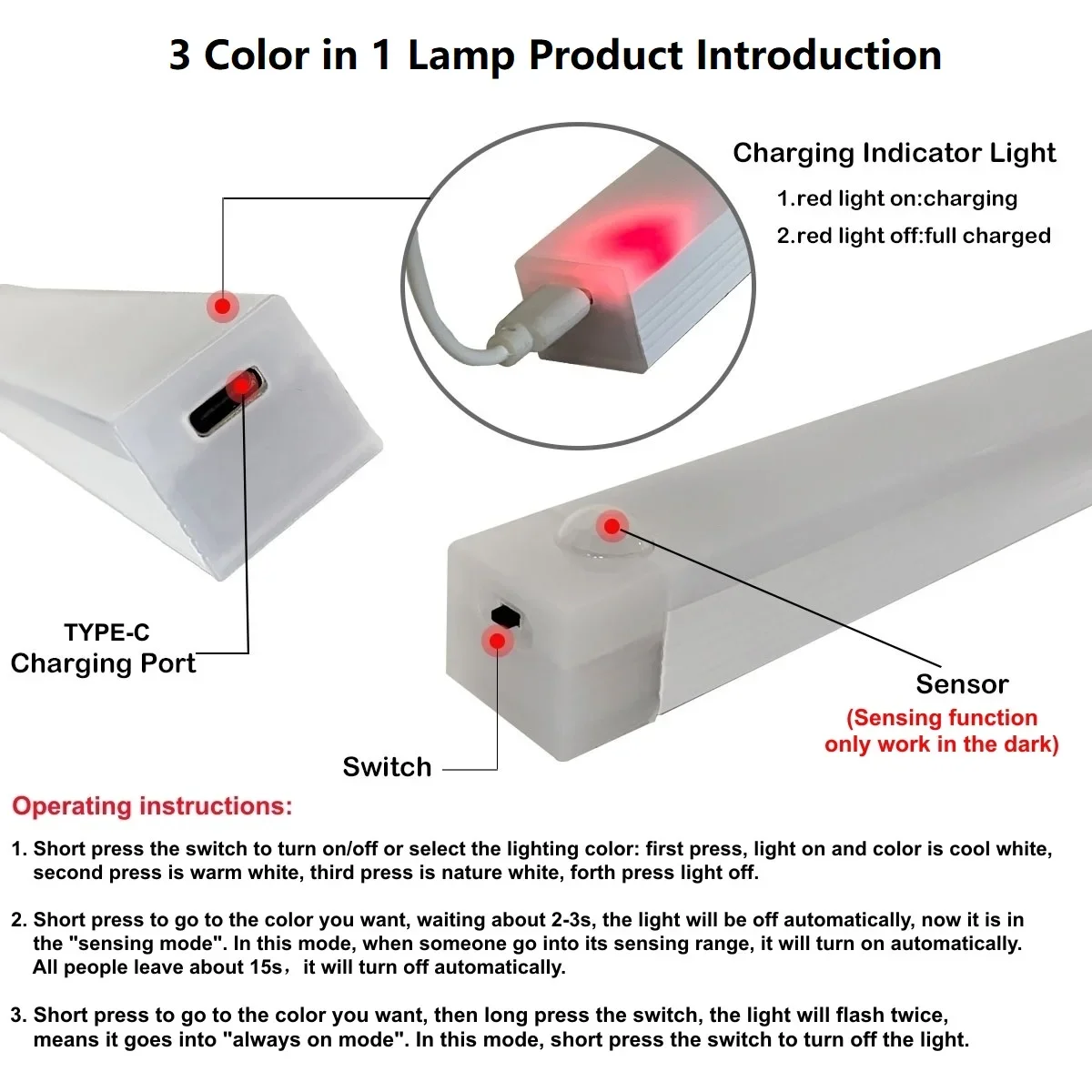 USB Rechargeable Wireless LED Bar Light with Motion Sensor Magnetic Night Light for Kitchen Portable Cordless Cabinet Lamp