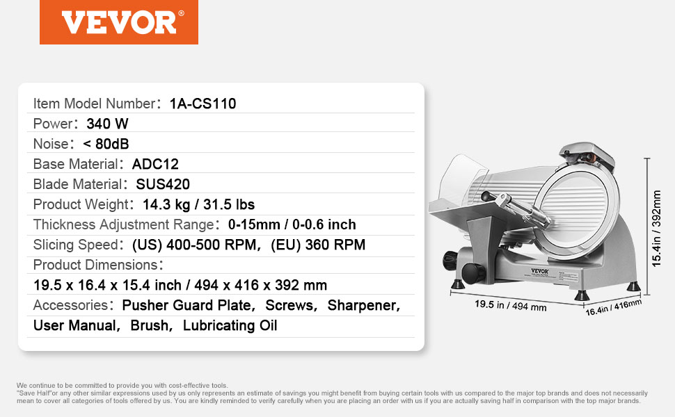 VEVOR 340W Meat Slicer Electric Deli Food Slicer with SUS420 Stainless Steel&Built-in Sharpening Stone for Commercial and Home