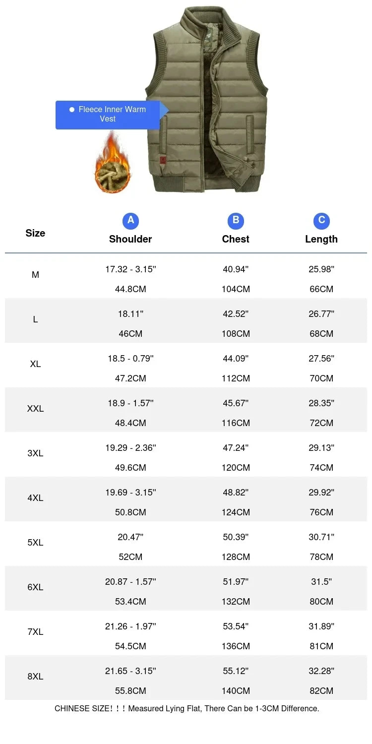 Winter Mens Fleece Jacket Sleeveless Vest Man Waterproof Vest Coats Stand Collar Windbreaker Padded Waistcoats Clothing 8XL