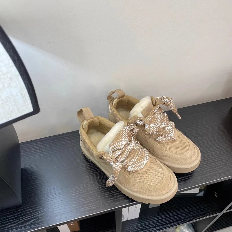Women's cotton shoes 2025 new snow boots with plush and thickened fur integrated warmth and anti slip winter women's shoes